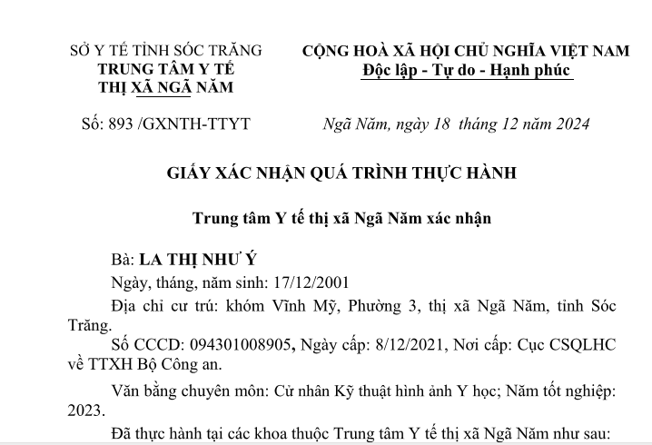 Xác nhận nhân viên thực hành T12/2024
