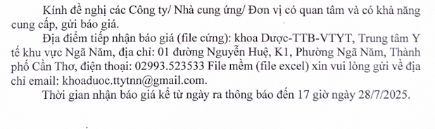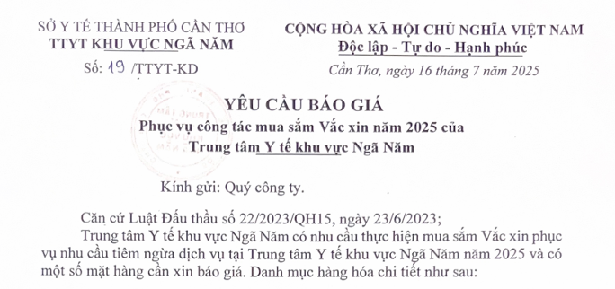 Yêu cầu báo giá mua Vắc xin năm 2025 của Trung tâm Y tế khu vực Ngã Năm
