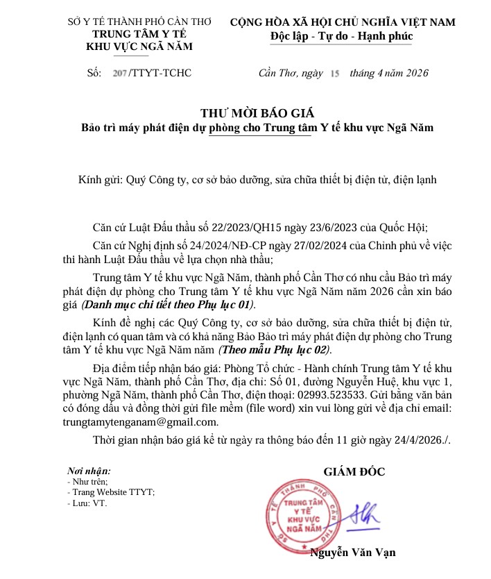 Thư mời báo giá Bảo trì máy phát điện dự phòng