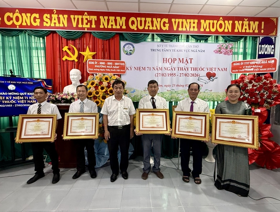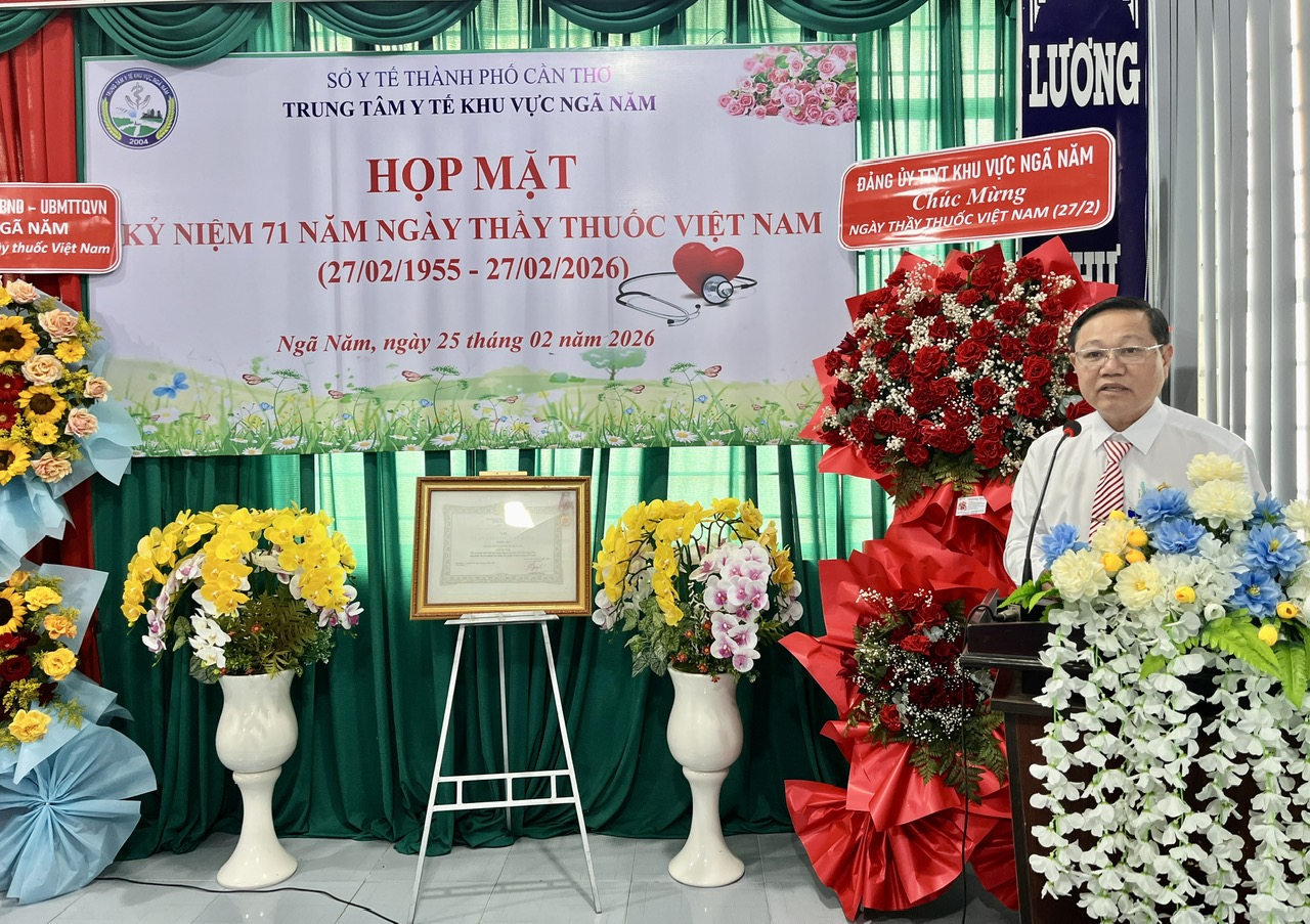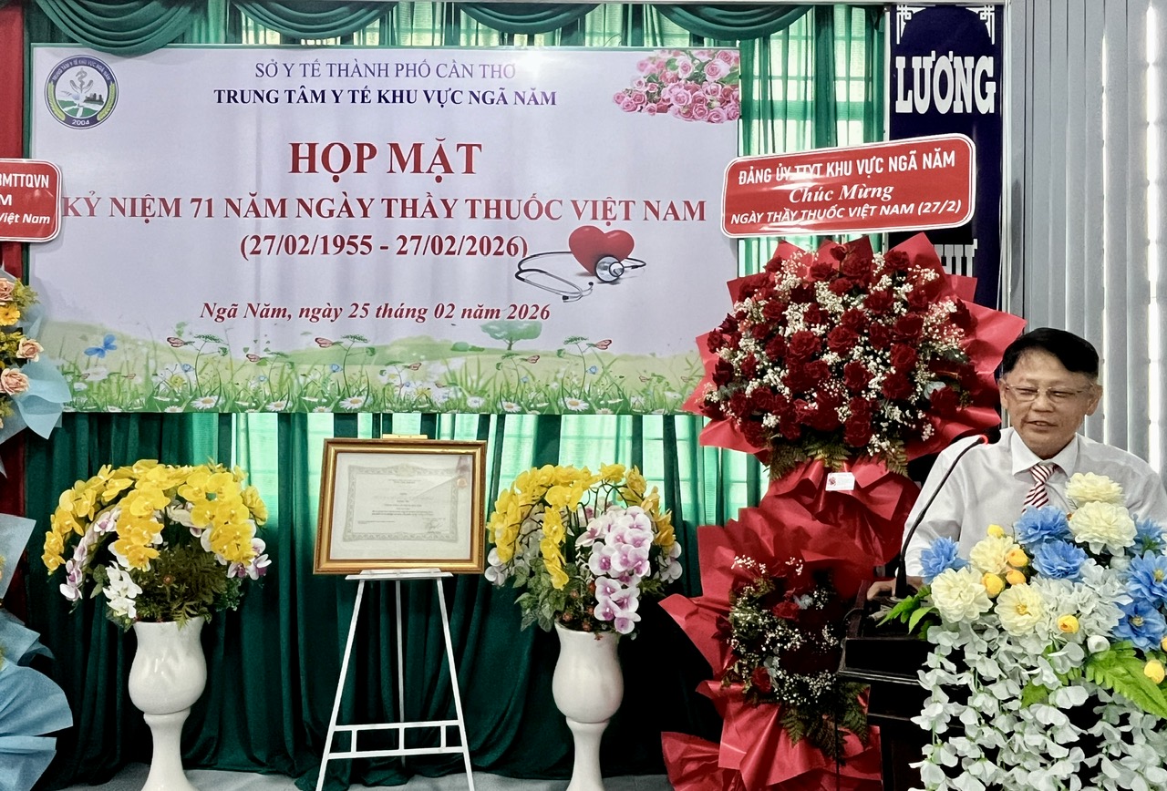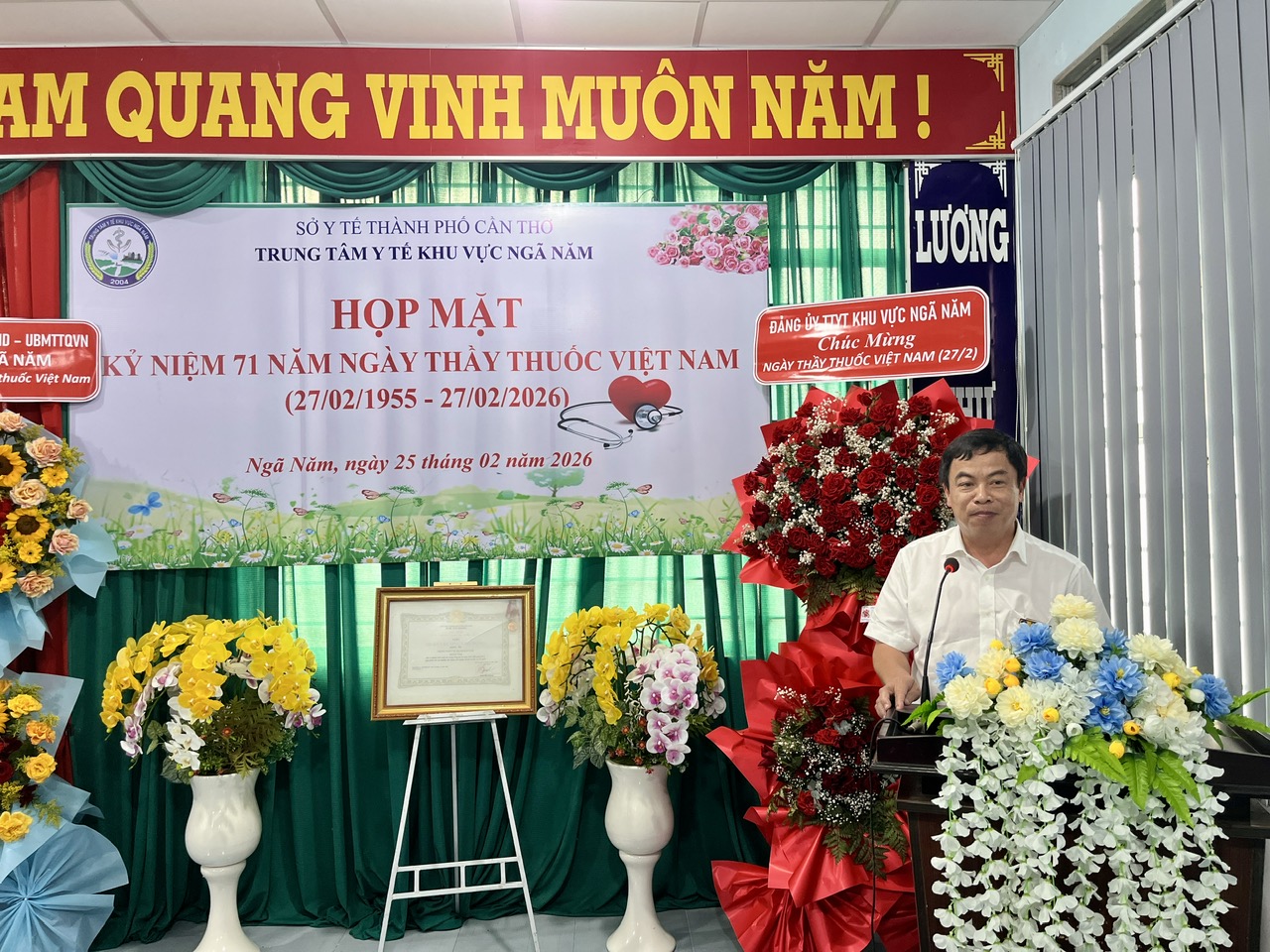Chiều ngày 25/02/2026 Trung tâm Y tế khu vực Ngã Năm tổ chức buổi họp mặt kỷ niệm 71 năm ngày Thầy thuốc Việt Nam tại Hội trường Trung tâm Y tế. Đến dự họp mặt có BSCKII - Thầy thuốc ưu tứ Trần Văn Dũng, Phó Giám đốc Sở Y tế thành phố Cần Thơ; Ông Võ Minh Thắng, Bí thư Đảng ủy phường Ngã Năm; Ông Phan Văn Sáu, Bí thư Đảng ủy xã Tân Long; Ông Lê Văn Dũng, Phó Bí thư Đảng ủy, Chủ tịch phường Mỹ Quới; BSCKI Nguyễn Văn Vạn, Bí thư Đảng ủy, Giám đốc Trung tâm Y tế, cùng dự có: các thành viên Ban giám đốc, Ban chấp hành Công đoàn cơ sở, Ban chấp hành Chi đoàn, đại diện các phòng, khoa thuộc Trung tâm Y tế khu vực Ngã Năm; Cán Bộ hưu trí Ngành Y tế; Đại diện các trạm Y tế các xã, phường: Ngã Năm, Mỹ Quới, Tân Long.