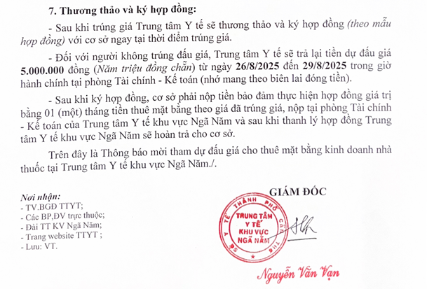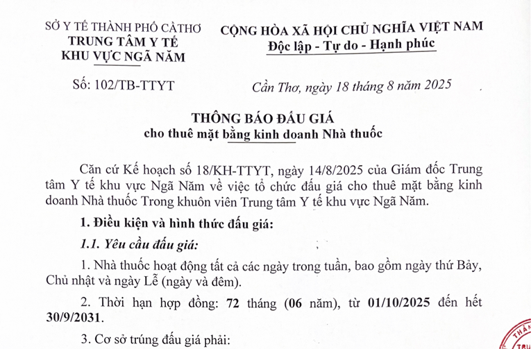 Thông báo đấu giá cho thuê mặt bằng kinh doanh Nhà thuốc