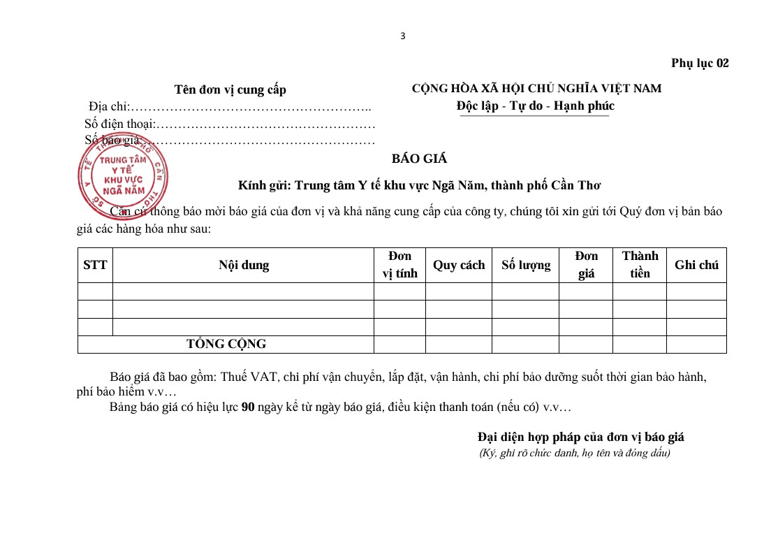 Thông báo mời báo giá