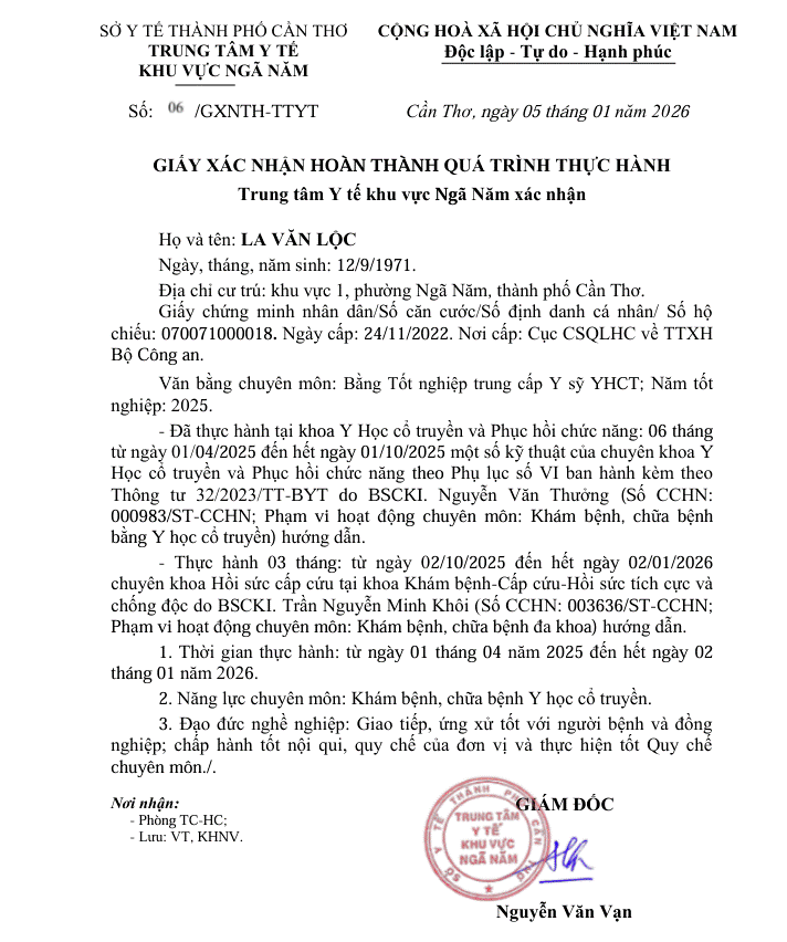 XÁC NHẬN THỰC HÀNH LA VĂN LỘC